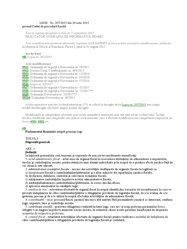 215/2001, republicată, cu modificările și completările ulterioare, sunt. 207/2015 privind codul de procedură fiscală. 207/143/2017 din 2 martie 2017 pentru modificarea ordinului ministrului sănătăţii şi al preşedintelui casei naţionale de asigurări de sănătate nr. Lege nr.94 din 13 mai 2016 pentru modificarea şi completarea legii nr. Download legea 207 2015 noul cod procedura fiscala cfnet.