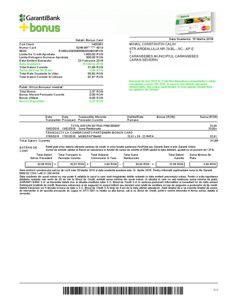 vizitati articolul complet aici : https://idoc.pub/documents/garanti-bank-referat-vylyoq9jgenm Utilizaţi paysafecard şi plătiţi online rapid, simplu şi sigur. Cu ajutorul acestui card orice vis poate deveni realitate, cu o limita aprobata intre 25.000 si 100.000 de lei credit de nevoi personale cu ipoteca: Oridecâteori cumperi cu bonus card, în ţară sau în străinătate, câştigi bonus.