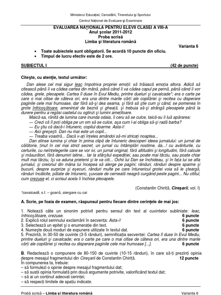 Evaluare Nationala 2012 Romana